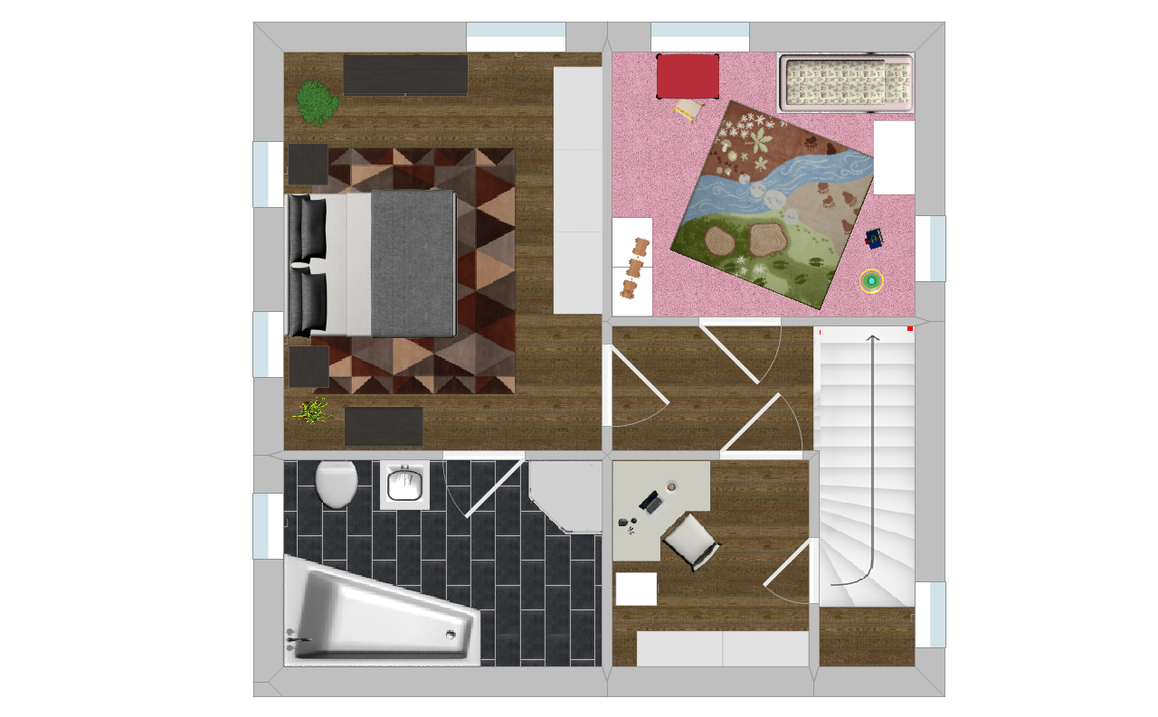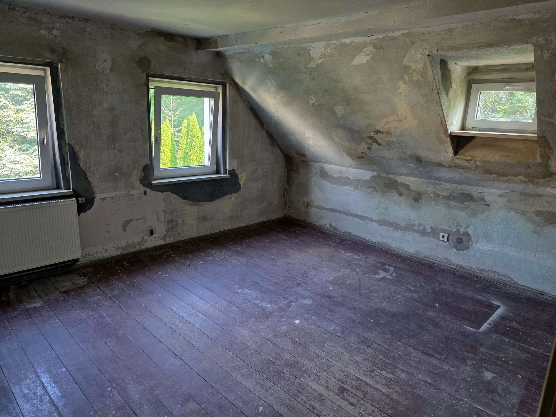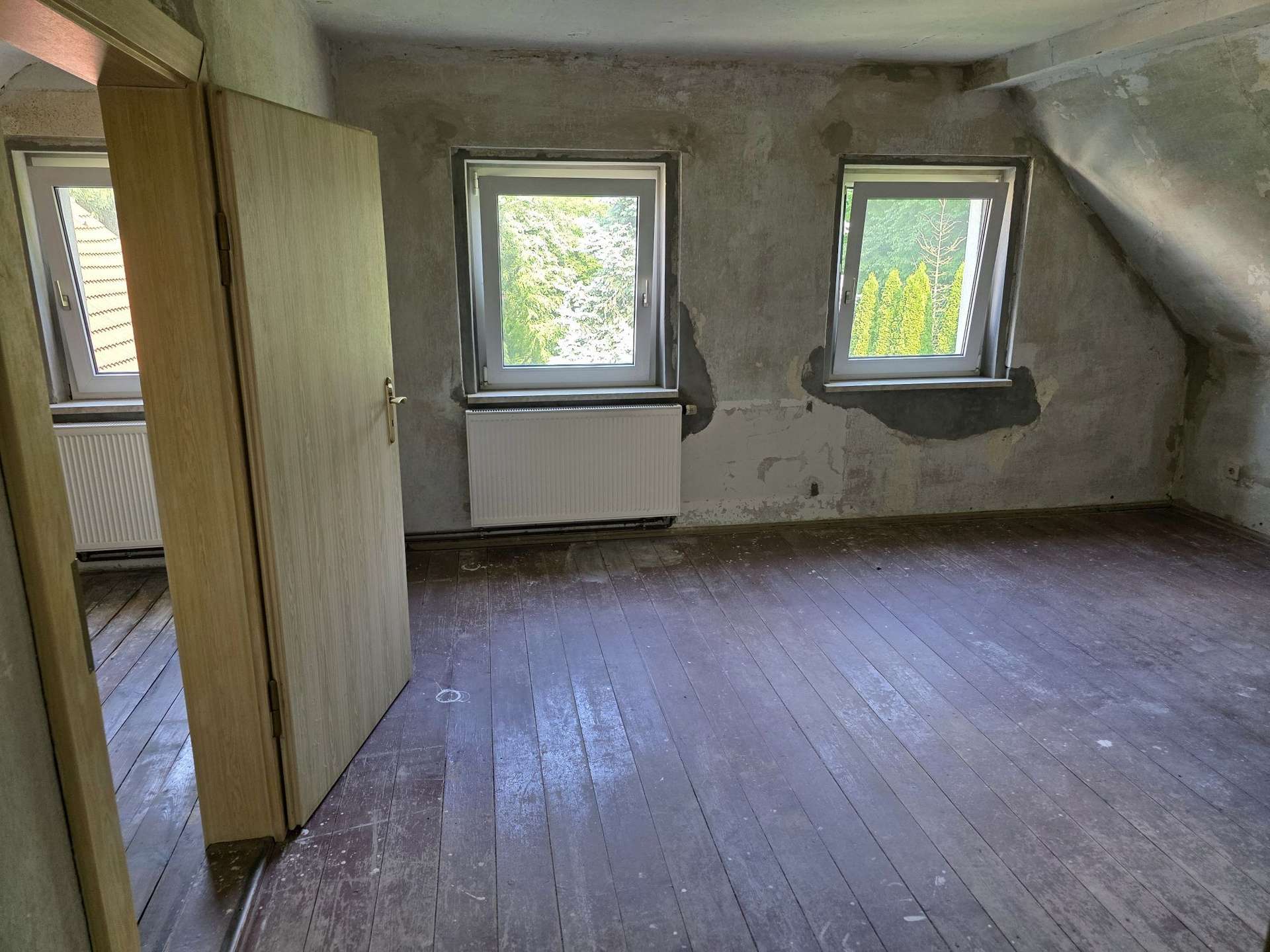 Das Bad müsste aus dem ersten Stock ins EG verlegt werden, damit auch eine Wanne Platz findet,