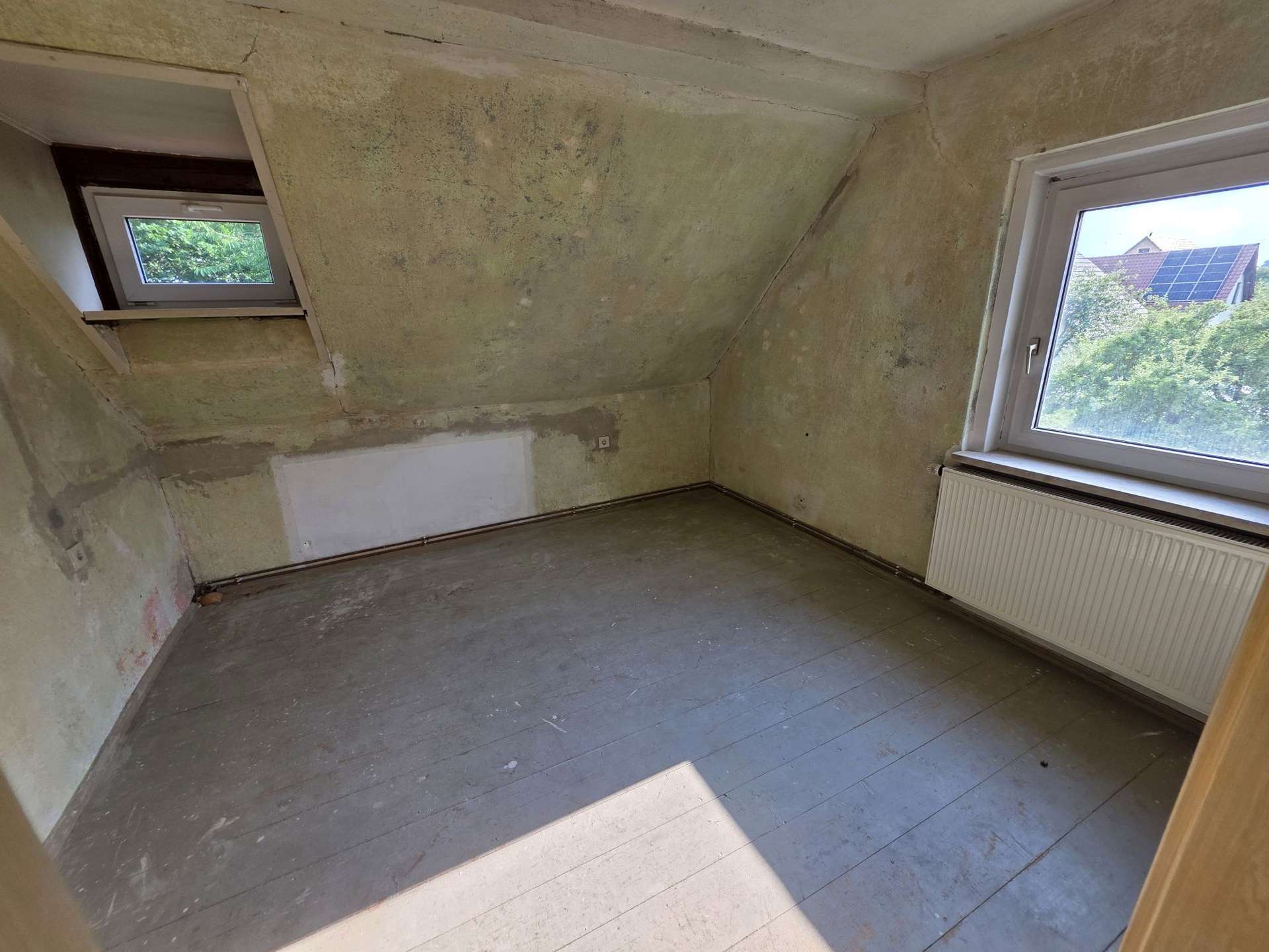 OG: Schlafzimmer, 2 Kinderzimmer, Tageslichtbad mit Dusche, Zugang zum Spitzboden, Flur
