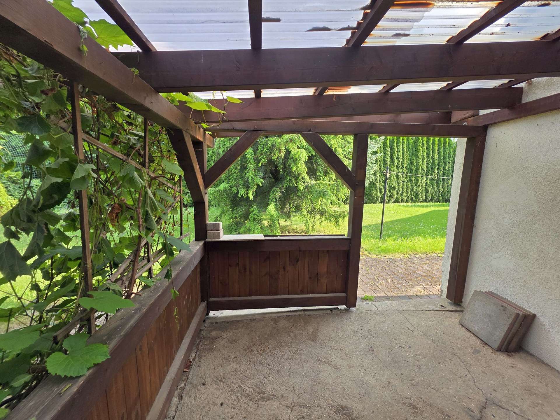 - überdachte Grill-Veranda-Ecke im Garten