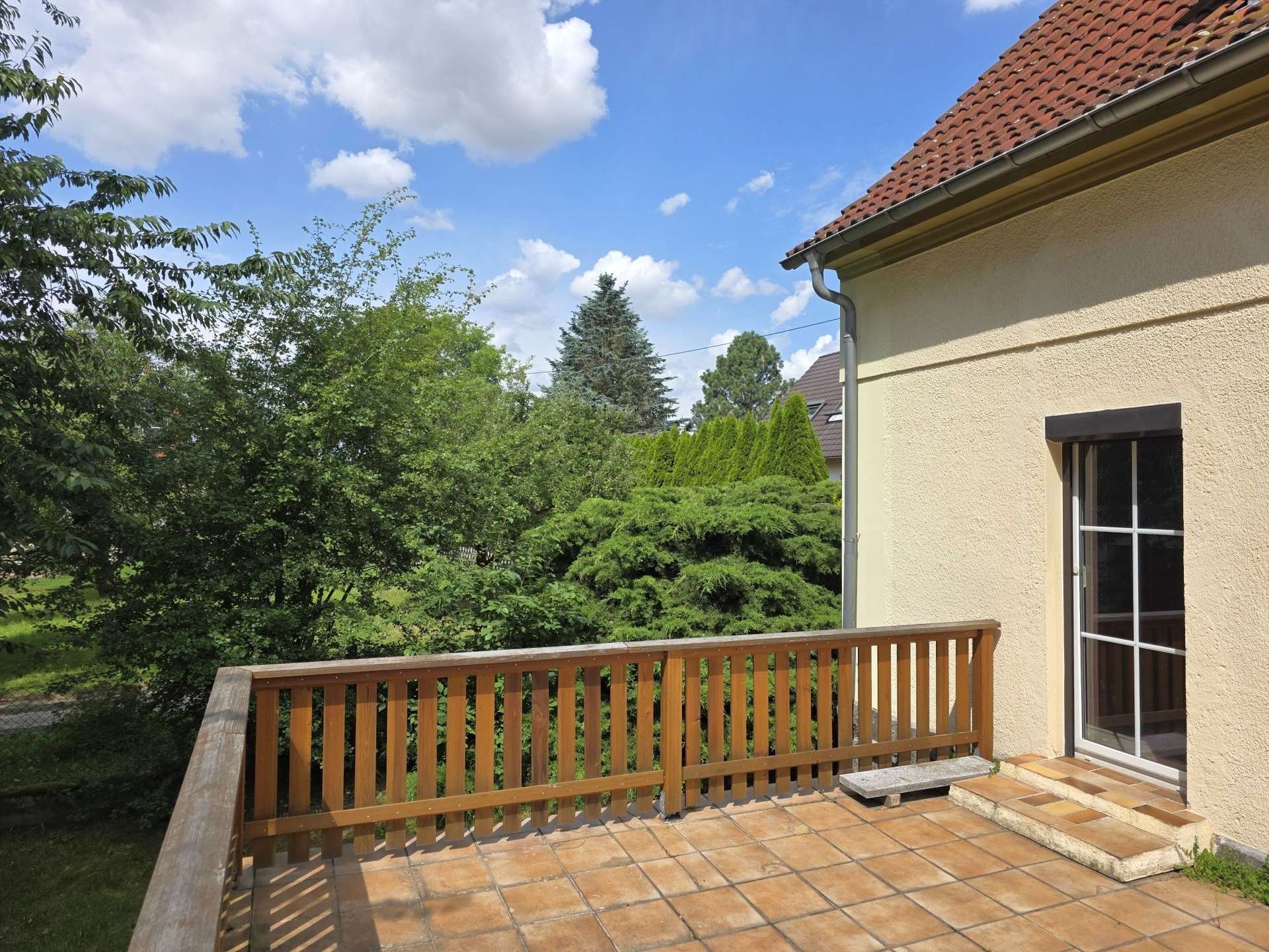 - Große Terrasse mit Zugang zum Garten ( Grundstück: 765m²)