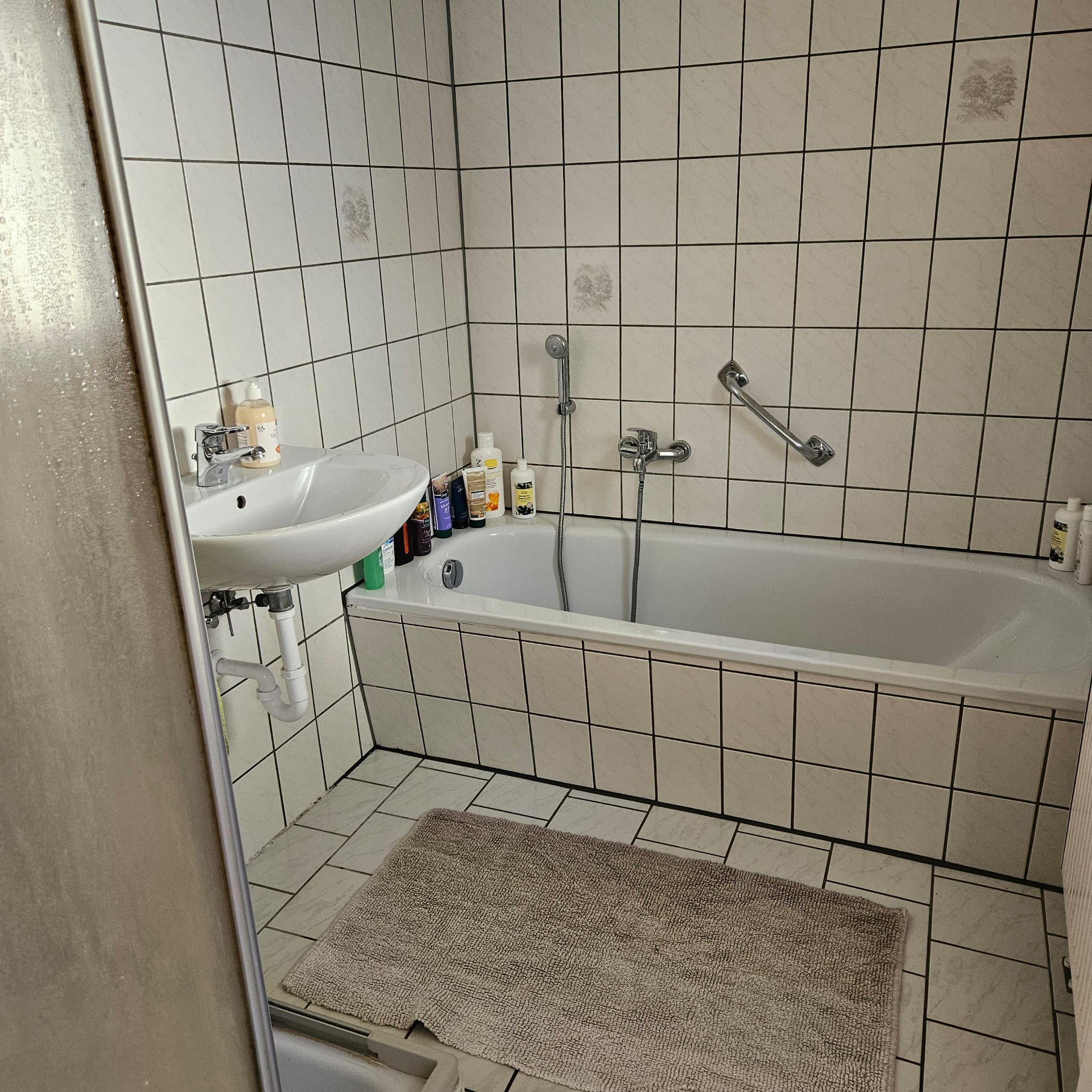 Tageslichtbad mit Wanne und Dusche, sep. WC, Heizungsraum, Flur