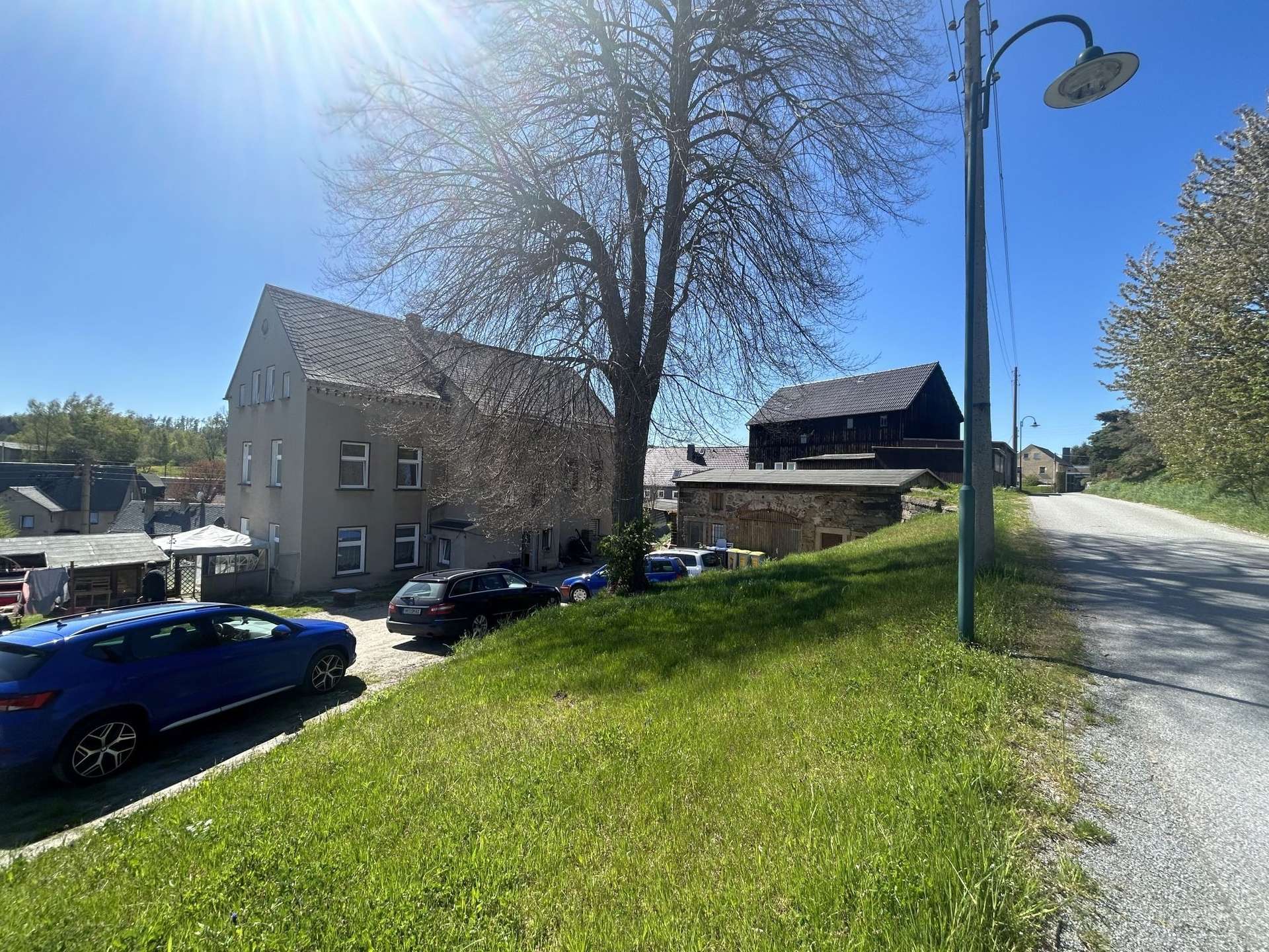 Der große Hof vor dem Haus bietet ausreichend Platz für die Fahrzeuge der Mieter.
