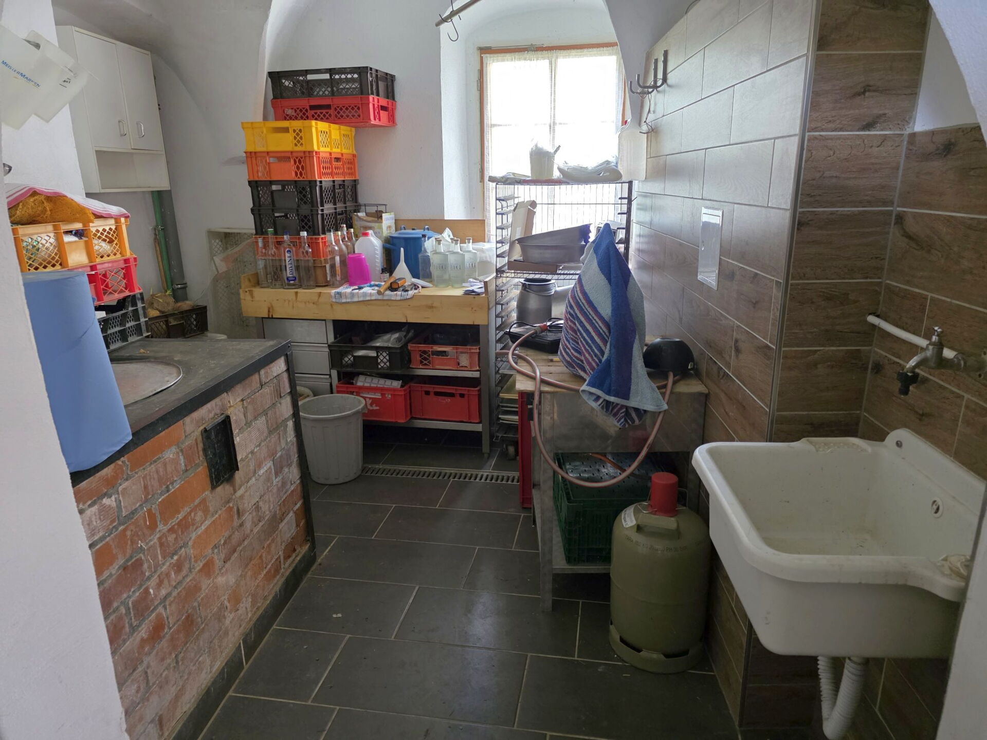 im EG: typische Abstellräume, 1 gefliester Schlachtraum, Werkstatt