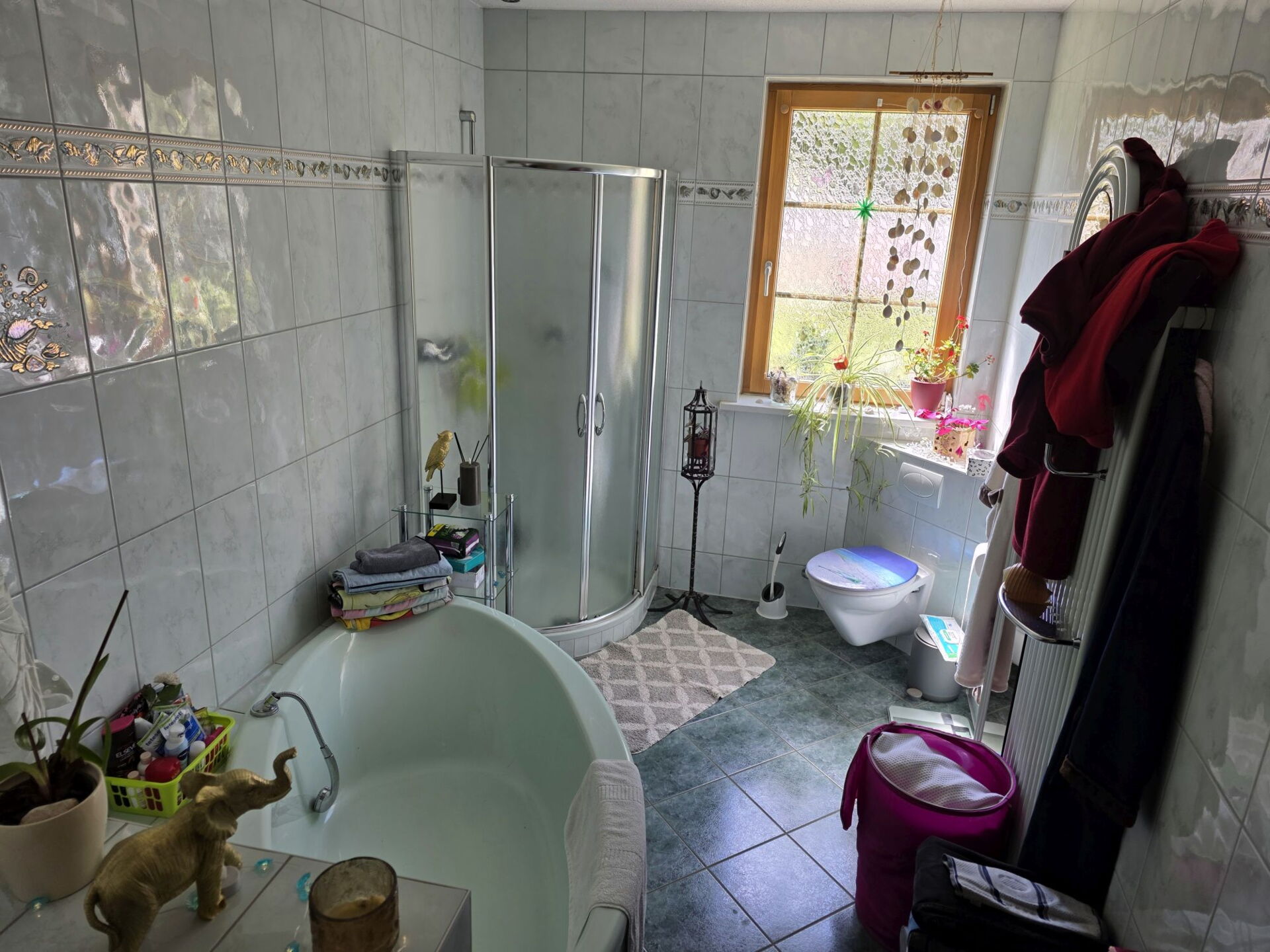 - Bad mit Wanne, Dusche, Fenster (Stand 80/90er