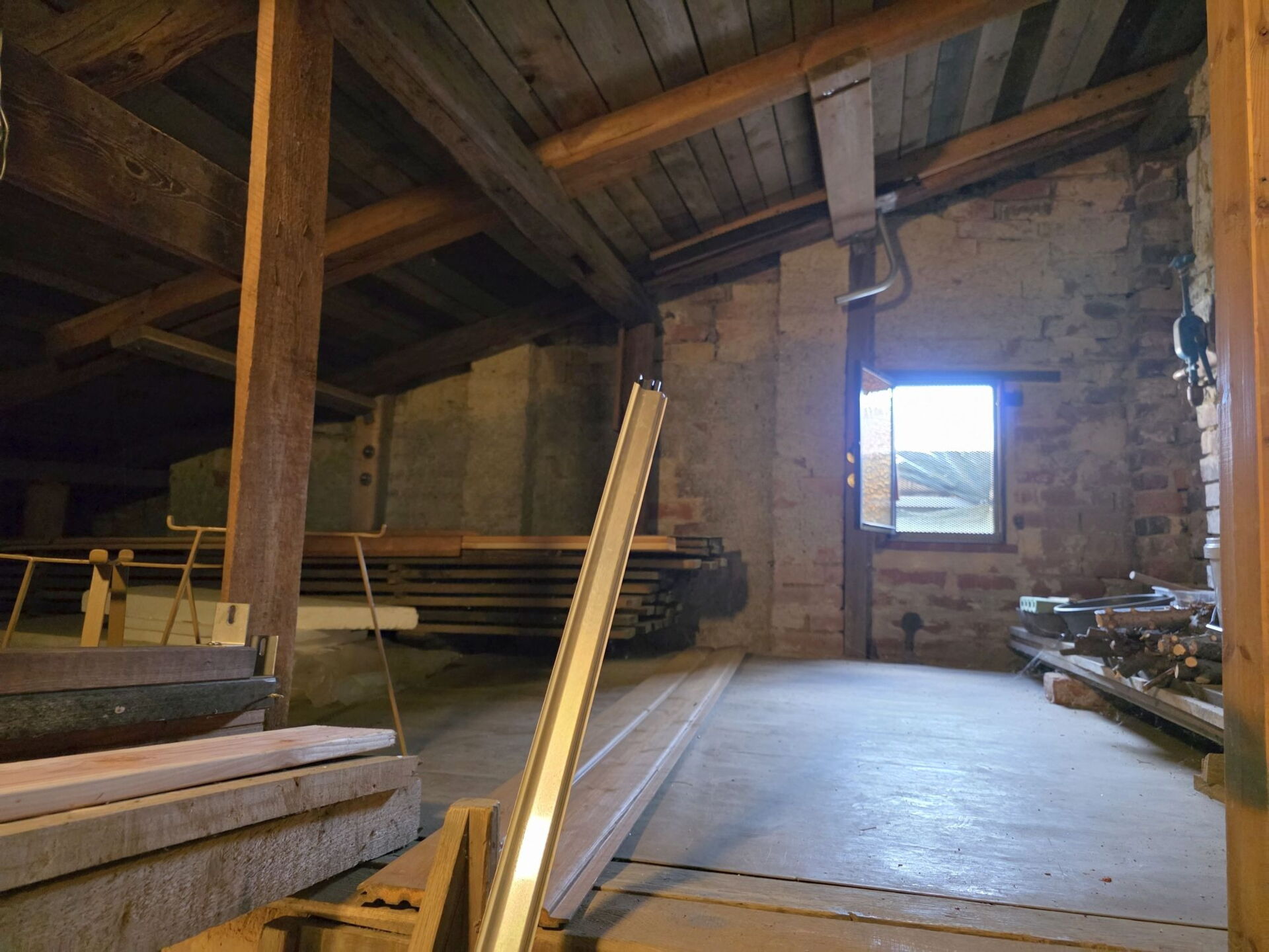 Nebengebäude: früher Stall und Heuboden, heute große Garage, mit Hobbyraum und noch viel Platz für die eine neue Nutzung.