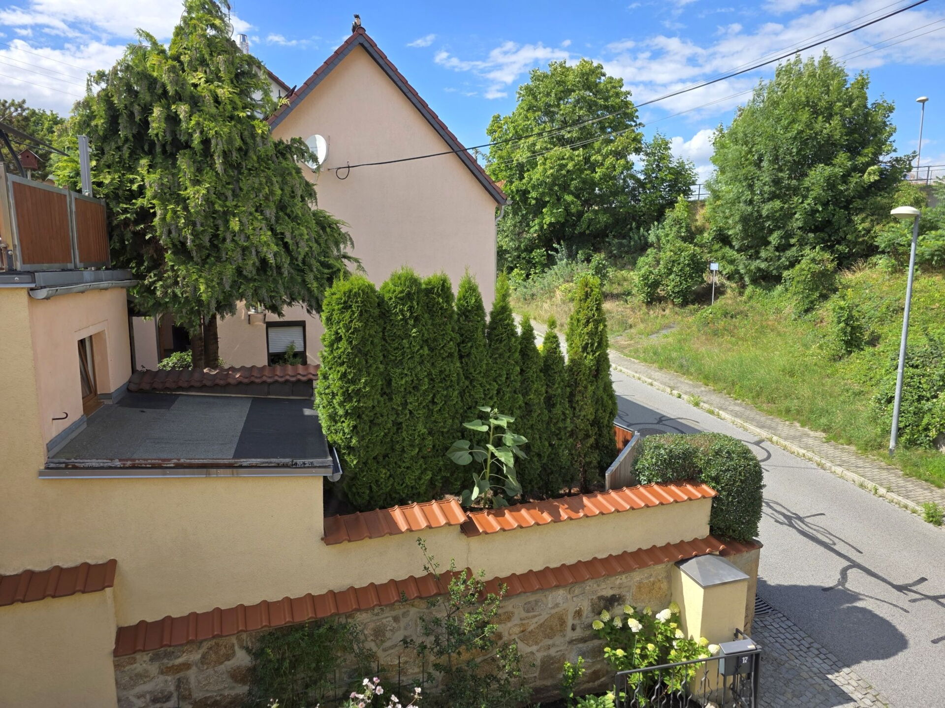 Da der hintere Grundstücksteil an einem Hang liegt, ist der Garten als Terrasse angelegt, welcher über das erste OG und den Balkon verbunden ist. Gleichzeitig aber auch über eine Treppe direkt vom Hof begehbar ist.
