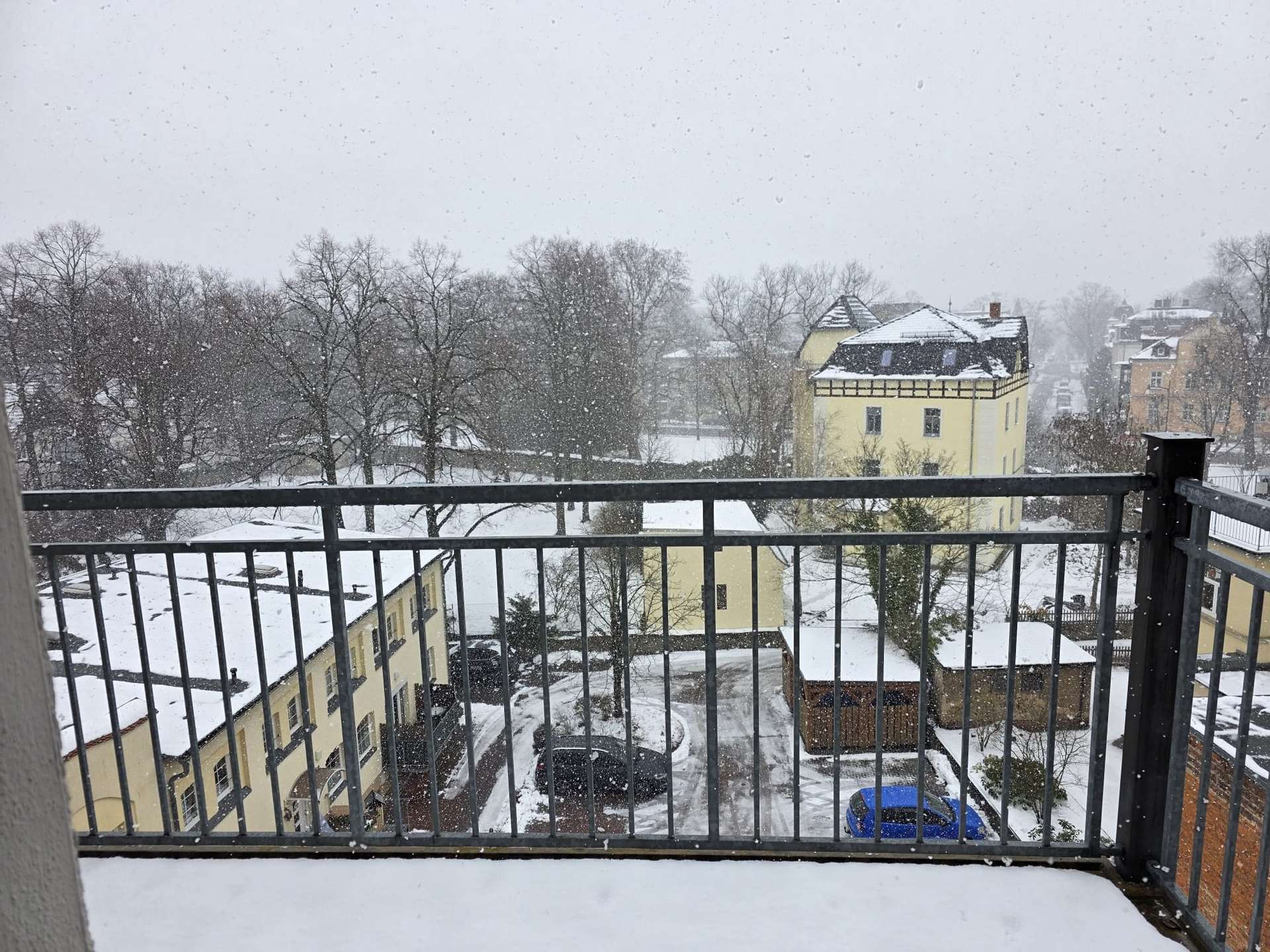 Durch das Wohnzimmer gelangen Sie auf den großen Balkon mit einem tollen Blick über die Dächer von Bautzen bis ins Oberlausitzer Bergland.