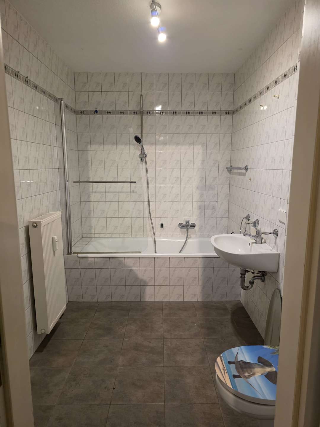 Ein separates WC sowie ein Badezimmer mit Badewanne und Duschmöglichkeit sind vorhanden. (Ohne Fenster)