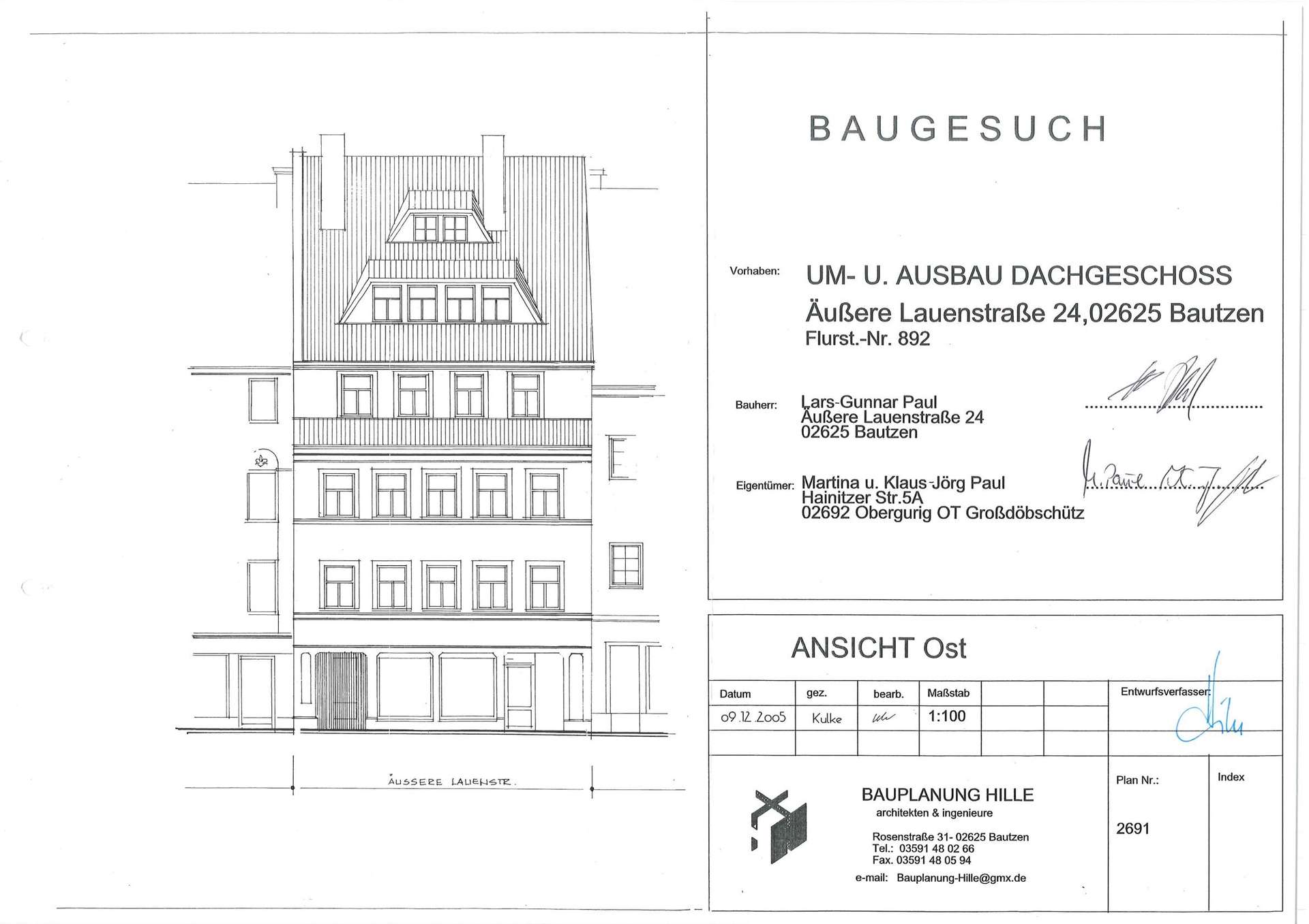 Die Dachgeschosswohnung befindet sich auf der Äußeren Lauenstraße 24 in Bautzen.