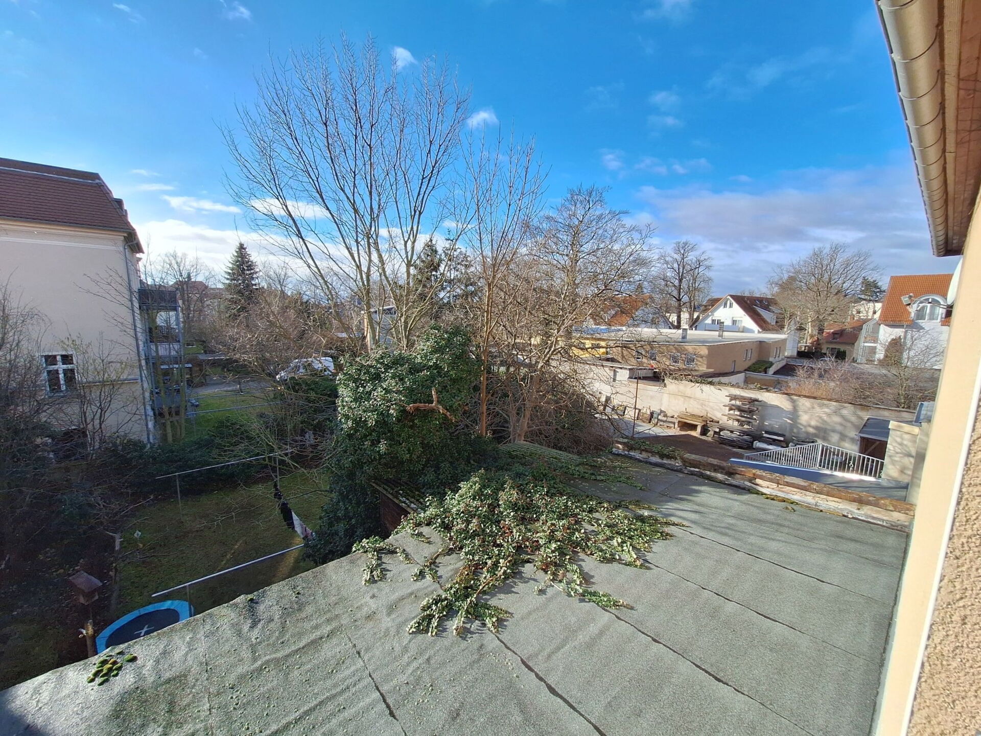 Die Wohnung erstreckt sich über das 2. Obergeschoss und Dachgeschoss und befindet sich leicht zurückgesetzt im Nebengebäude bzw. Seitenflügel einer gepflegten Wohnanlage.