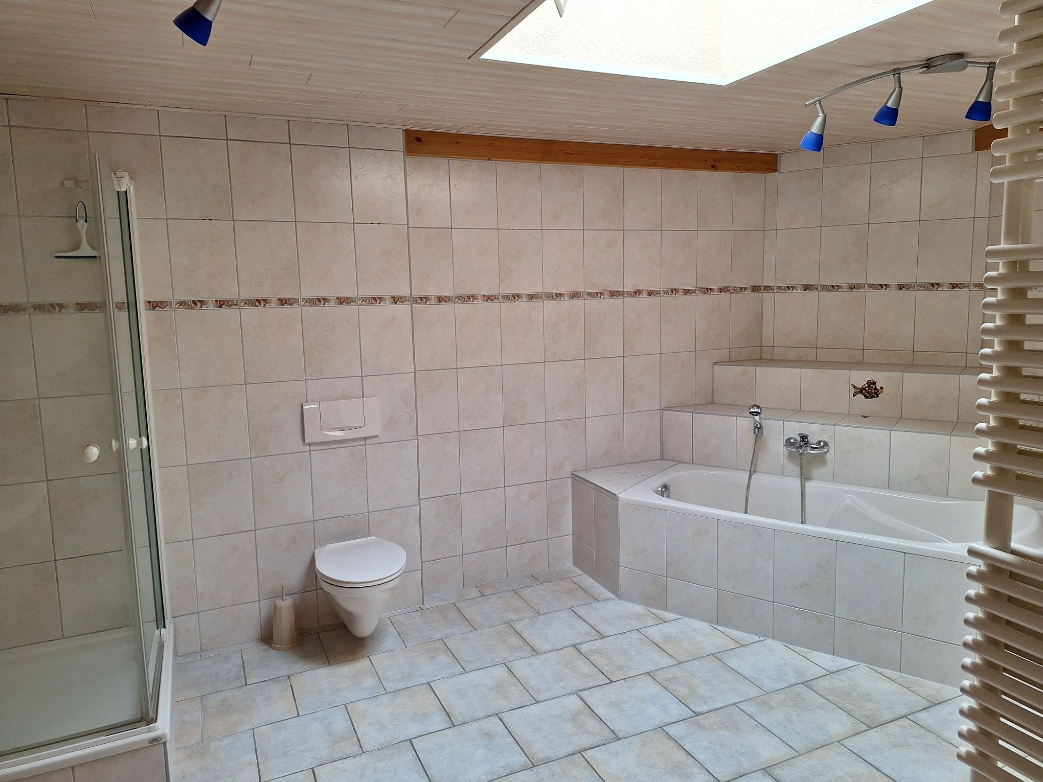 -Tageslichtbad mit Badewanne, Dusche und WC